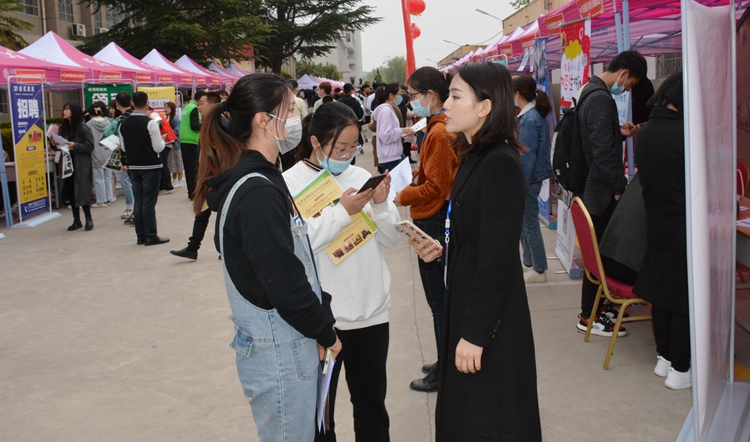 為更好地拓寬畢業(yè)生就業(yè)渠道,確保2021屆畢業(yè)生充分就業(yè)、穩(wěn)定就業(yè),4月10日,由陜西省教育廳主辦,商洛市人力資源和社會保障局、商洛市人才交流服務(wù)中心協(xié)辦,我校承辦的2021屆畢業(yè)生春季綜合類校園招聘會順利舉辦。校黨委副書記彭虎軍、商洛市人力資源和社會保障局及人才交流服務(wù)中心相關(guān)負(fù)責(zé)人深入招聘會現(xiàn)場指導(dǎo)工作。我校相關(guān)職能部門負(fù)責(zé)人,各二級學(xué)院黨總支書記、學(xué)工辦主任及畢業(yè)班輔導(dǎo)員全程參與并為畢業(yè)生提供就業(yè)指導(dǎo)服務(wù)。