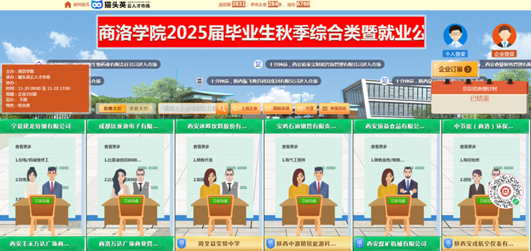 為充分做好我校2025屆畢業(yè)生就業(yè)工作,充分搭建用人單位和畢業(yè)生交流平臺,確保我校畢業(yè)生更加充分、更高質(zhì)量就業(yè),12月25日,由省教育廳指導(dǎo)、省就業(yè)留學(xué)中心支持,我校和商洛市人社局聯(lián)合主辦,我校就業(yè)中心和商洛市人才中心承辦的2025屆畢業(yè)生冬季綜合類暨人力資源市場高校畢業(yè)生就業(yè)服務(wù)專項行動網(wǎng)絡(luò)視頻招聘會依托貓頭英云人才市場順利舉辦。