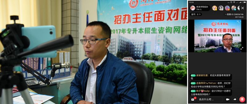 今年專升本志愿填報期間,我校創(chuàng)新性開辟了網(wǎng)絡直播平臺,借助“互聯(lián)網(wǎng)+”手段開展招生宣傳,取得了良好效果。這項工作在陜西省高校中尚屬首創(chuàng)。
