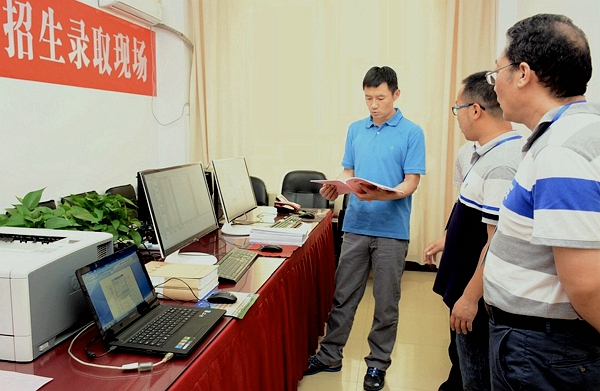 7月11日,副校長劉勇在黨委委員、教務(wù)處處長李超等人的陪同下到我校2018年高考招生錄取現(xiàn)場檢查指導(dǎo)招生錄取工作,慰問招生錄取工作人員。