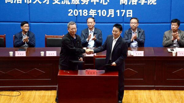 劉鵬程和龍治剛共同為“中國西安人才市場商洛學(xué)院就業(yè)創(chuàng)業(yè)服務(wù)中心”就業(yè)創(chuàng)業(yè)服務(wù)中心揭牌,并為12家商洛市2018年見習(xí)單位進(jìn)行了授牌。彭虎軍代表學(xué)校與陜西省人才交流中心簽訂合作協(xié)議。
