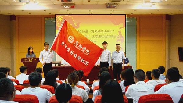 7月8日,我校2019年“萬名學子扶千村”脫貧攻堅暨“三下鄉(xiāng)”大學生社會實踐活動出征儀式舉行。校黨委副書記彭虎軍出席儀式并為社會實踐團隊代表授旗,宣傳部、學工部、團委、教務處、科技處負責人及各二級學院團總支書記、學生代表共同參加了出征儀式。儀式由團委副書記許薇主持。