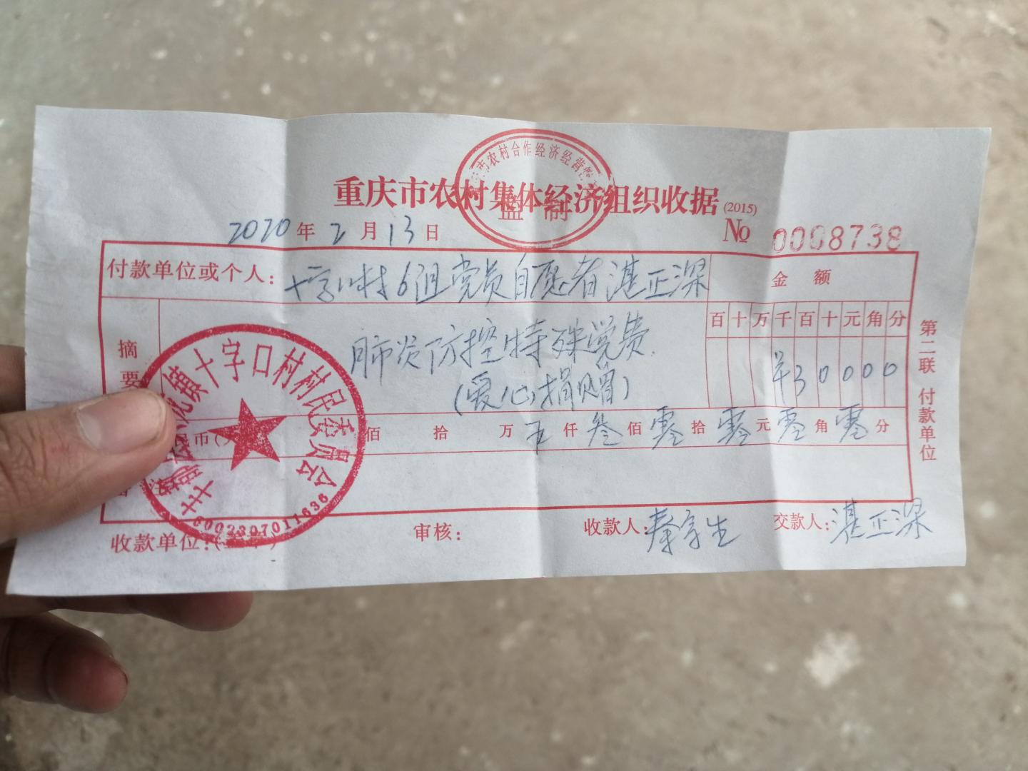 疫情暴發(fā)時,湛正深同學正在重慶市豐都縣興龍鎮(zhèn)十字口村的老家,對疫情的關注格外用心的他,在得知村黨委需要志愿者后,第一時間到所在十字口村村黨委報到請戰(zhàn),主動提交請戰(zhàn)書。他在請戰(zhàn)書中寫到:作為一名學生黨員,我時刻牢記著隨時準備為黨和人民犧牲一切的入黨誓詞,在疫情防控關鍵的時刻,希望能夠參與到疫情防疫第一線,為防范疫情出一份力。同時,湛正深還將自己兼職賺取的三百元現(xiàn)金作為特殊黨費上交組織以做疫情防控之用。經(jīng)過當?shù)攸h委的批準,湛正深同學加入“抗疫”工作小組,在做好自身安全防護的前提下,迅速投身防控一線。