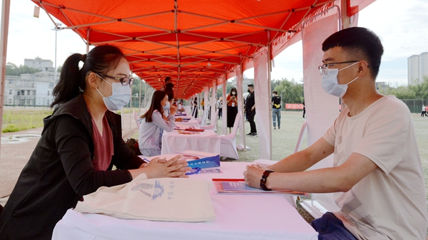 為認真貫徹落實全國普通高等學(xué)校畢業(yè)生就業(yè)創(chuàng)業(yè)工作電視電話會議精神,6月10日,我校與湖州市委、湖州市人民政府在學(xué)校體育場共同舉辦商洛學(xué)院2020屆畢業(yè)生湖州專場招聘會。我校校長范新會、校黨委副書記彭虎軍,中共湖州市委組織部副部長、湖州市人力資源與社會保障局局長王樹,湖州市人力資源與社會保障局副局長郭連偉出席啟動儀式并現(xiàn)場指導(dǎo)招聘活動。校相關(guān)職能部門、各二級學(xué)院黨總支負責(zé)人、學(xué)工辦主任及畢業(yè)生輔導(dǎo)員參加招聘會并為畢業(yè)生提供就業(yè)指導(dǎo)服務(wù),湖州市三區(qū)三縣人社部門代表、湖州市80多位企業(yè)招聘代表和我校600多名畢業(yè)生參加了此次活動。