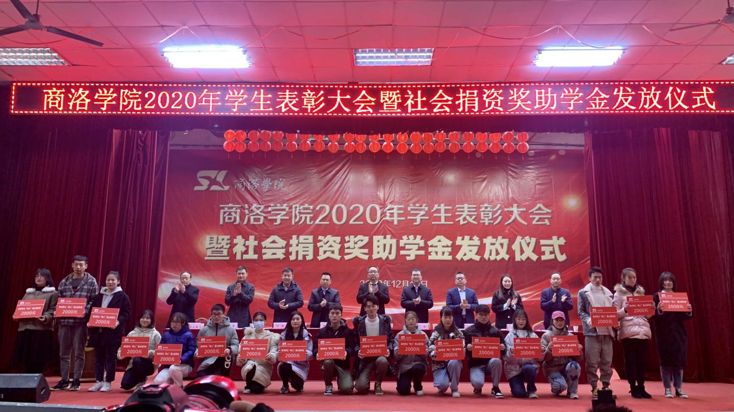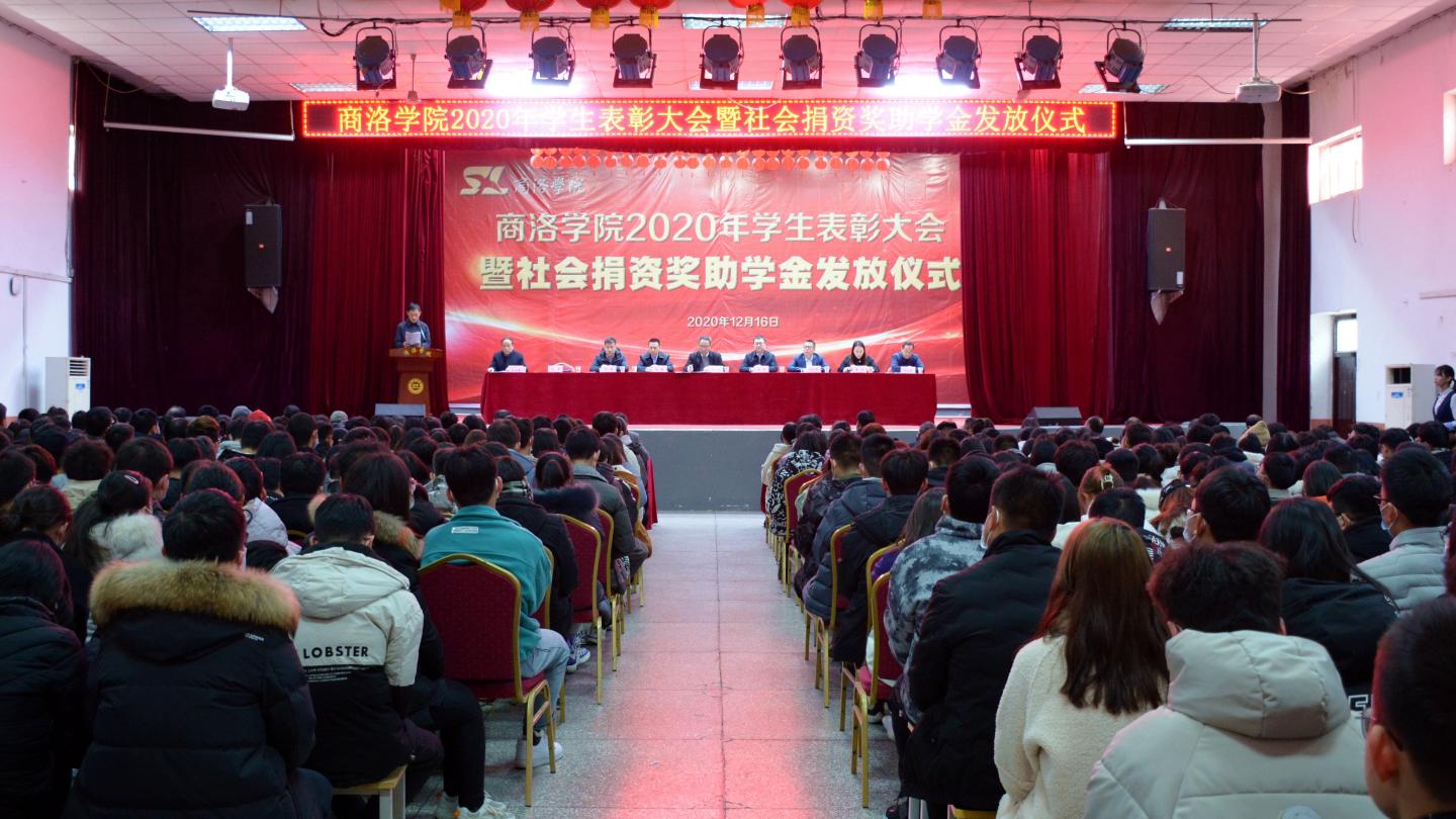 12月16日,我校2020年學(xué)生表彰大會(huì)暨社會(huì)捐資獎(jiǎng)助學(xué)金發(fā)放儀式在大學(xué)生活動(dòng)中心隆重舉行。校黨委書記龍治剛、黨委副書記劉勇,國網(wǎng)商洛供電公司總經(jīng)理李強(qiáng),中國聯(lián)通商洛分公司副總經(jīng)理毛繁,中國電信商洛分公司副總經(jīng)理王軍建,中國移動(dòng)商洛分公司黨委委員、副總經(jīng)理許鵬,貴州茅臺(tái)陜西省區(qū)域負(fù)責(zé)人李方,校黨委委員、黨委辦公室·院長辦公室主任、校友總會(huì)辦公室負(fù)責(zé)人張向東等出席大會(huì)。大會(huì)由學(xué)生處處長石啟英主持。