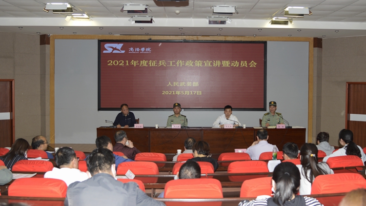 5月17日,我校舉辦2021年征兵工作政策宣講暨動員會。校黨委副書記彭虎軍、商洛軍分區(qū)動員處處長周武強(qiáng)上校、商州區(qū)人武部陳強(qiáng)中校出席會議。我校各二級學(xué)院黨總支書記、學(xué)工辦主任及全體輔導(dǎo)員共60余人參加會議。會議由學(xué)生處負(fù)責(zé)人主持。
