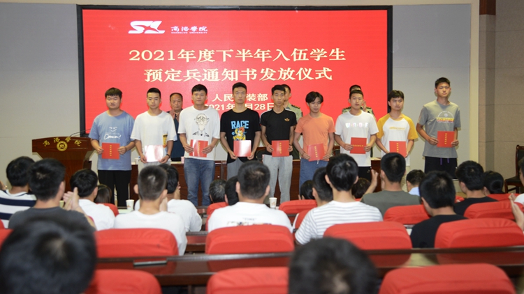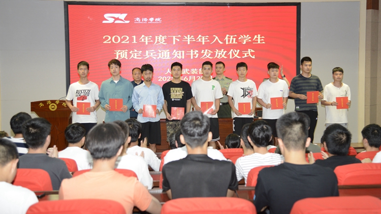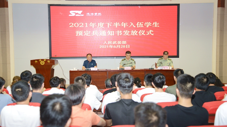 6月28日,我校舉辦了2021年度下半年入伍學(xué)生預(yù)定兵通知書發(fā)放儀式,商州區(qū)武裝部部長曹建明上校、副部長陳強(qiáng)中校出席會議。我校學(xué)生處處長石啟英、各二級學(xué)院學(xué)工辦主任及51名預(yù)定新兵參加了會議。會議由石啟英主持。