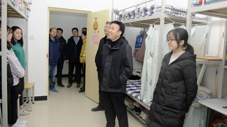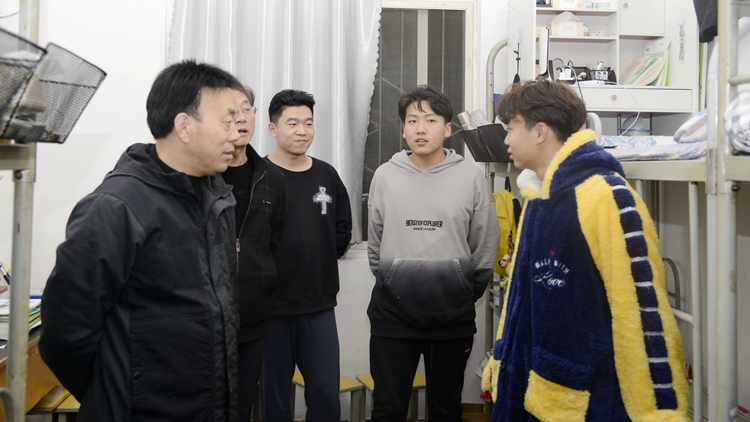 檢查中,彭虎軍詳細查看了公寓出入學生登記冊、輔導員進樓走訪工作臺賬及輔導員值班安排表,并就公寓管理、宿舍文明、宿舍衛(wèi)生、學生教育管理等工作與宿管員及值班輔導員進行了深入交流。在學生宿舍,彭虎軍仔細查看了宿舍環(huán)境、設(shè)施安全及衛(wèi)生情況,與學生們親切交談,詢問他們學習生活中的困難和需求、就業(yè)意向及宿舍供暖情況等,叮囑學生要提高安全意識,注意冬季用電安全,遵守公寓安全相關(guān)規(guī)定,營造良好的學習和生活環(huán)境。彭虎軍還要求相關(guān)部門及二級學院要進一步加強安全隱患排查整治工作,形成常態(tài)化工作機制,解決好突出問題,充分保障學校安全穩(wěn)定大局,確保正常的教育教學秩序。