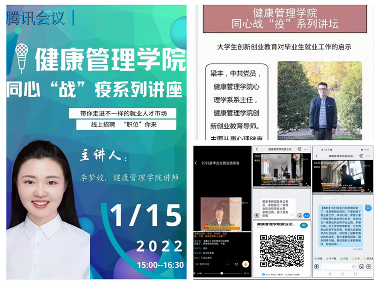 健康管理學(xué)院通過(guò)邀請(qǐng)學(xué)院創(chuàng)新創(chuàng)業(yè)教育指導(dǎo)教師舉辦“同心’戰(zhàn)’疫”系列報(bào)告會(huì);學(xué)院畢業(yè)班輔導(dǎo)員、班主任召開“2022屆畢業(yè)生就業(yè)促進(jìn)會(huì)”,為學(xué)生推送大量的就業(yè)招聘信息,進(jìn)一步增強(qiáng)了學(xué)院畢業(yè)生積極就業(yè)緊迫感,大大轉(zhuǎn)變了學(xué)院畢業(yè)生“先就業(yè)后擇業(yè)”的就業(yè)觀念。