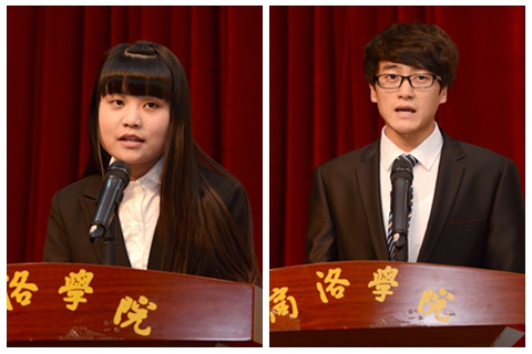 生物學院學生侯瑤、經(jīng)管學院學生趙文輝分別代表受表彰的先進個人和受資助學生作了大會發(fā)言。