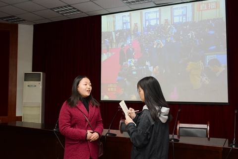 3月3日和3月5日,政協(xié)第十二屆全國(guó)委員會(huì)第五次會(huì)議、十二屆全國(guó)人大五次會(huì)議分別在北京人民大會(huì)堂開幕。我校組織師生在報(bào)告廳集中收看了開幕式實(shí)況直播,師生們分別通過(guò)手機(jī)、網(wǎng)絡(luò)、電視、廣播等媒體積極收看收聽(tīng),對(duì)兩會(huì)精神、熱點(diǎn)話題進(jìn)行了學(xué)習(xí)討論。