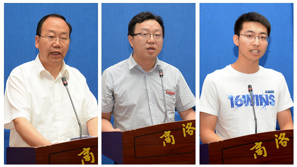 先進集體代表、生物學院黨總支書記丁爭尚教授,教師代表、電信學院袁訓鋒博士,學生代表、經(jīng)管學院信管1402班賈祥同學作了發(fā)言。