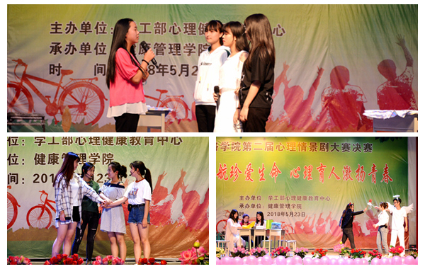 5月23日晚,以“陽(yáng)光護(hù)航助力成長(zhǎng),心理育人善待生命”為主題的我校第二屆校園心理情景劇大賽在大學(xué)生活動(dòng)中心舉行。本次大賽由學(xué)生處與健康管理學(xué)院聯(lián)合舉辦。各二級(jí)學(xué)院黨總支書記、全體輔導(dǎo)員、學(xué)生代表共500余人觀看了比賽。