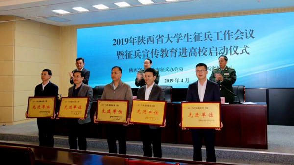 4月28日,省人民政府征兵辦公室、省教育廳聯(lián)合舉行2019年全省大學生征兵工作會議暨征兵宣傳教育進高校啟動儀式。會議表彰了2018年全省高校征兵工作先進單位,包括我校在內的15所高校獲此殊榮。黨委副書記彭虎軍代表學校在現(xiàn)場領受了獎牌。