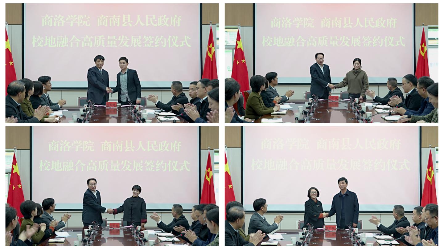教務(wù)處、科技處,電子信息與電氣工程學(xué)院、化學(xué)工程與現(xiàn)代材料學(xué)院、健康管理學(xué)院負(fù)責(zé)人,商南縣縣委辦、政府辦、組織部、人社局等13部門負(fù)責(zé)人及簽約企業(yè)代表參加簽約儀式。