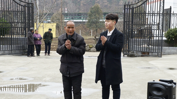 楊斜敬老院坐落在楊斜鎮(zhèn)的一個(gè)村莊里,青年志愿服務(wù)隊(duì)冒雨來(lái)到敬老院。一進(jìn)院子,這些常年生活在這里的孤寡老人們像見(jiàn)到親人般喜出望外,因?yàn)榻?jīng)常來(lái)往,大家很快就和老人們互動(dòng)起來(lái)。同學(xué)們?cè)谠鹤永锍?、跳舞、說(shuō)相聲,為老人表演節(jié)目,給這個(gè)寧?kù)o的院子帶來(lái)了歡聲笑語(yǔ),吸引了周邊村民前來(lái)觀看。管發(fā)亮老人激動(dòng)地告訴我們,自己今年64歲了,無(wú)兒無(wú)女,曾經(jīng)在街頭靠乞討生活,在政府的救助下,1992年來(lái)到敬老院,過(guò)上了有衣穿有飯吃的幸福生活。說(shuō)到高興處,管發(fā)亮吼起了秦腔,一連唱起《社會(huì)主義好》《回娘家》等歌曲。