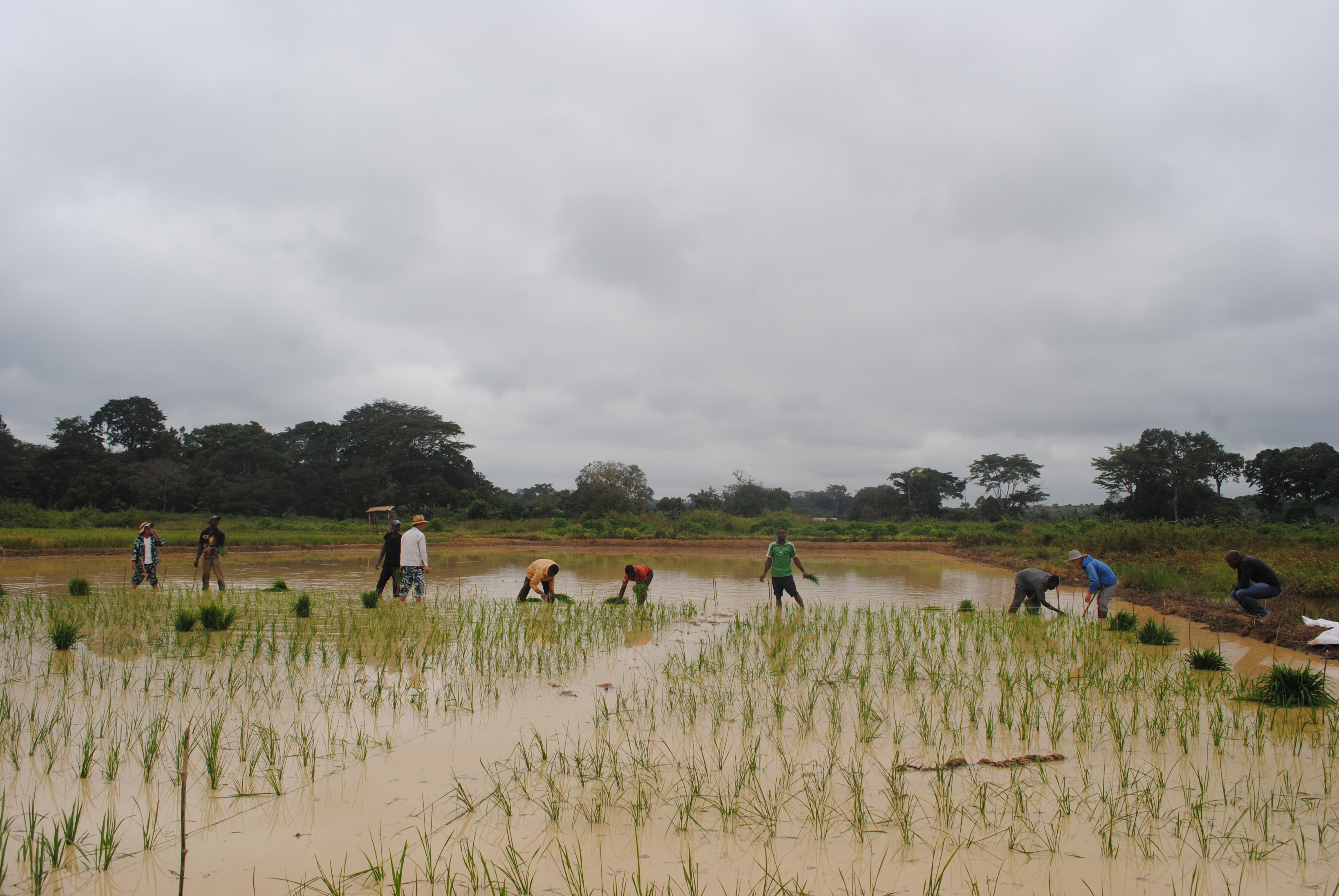 面對艱苦的條件,張軍沒有退縮,治療稍有起色,又投入工作了。當(dāng)時正值水稻育秧時節(jié),為了提升培訓(xùn)效果,張軍和隊員們挽起褲腿,光腳走進水田進行插秧現(xiàn)場示范,每次都被蚊子叮咬得滿腿是包。灌溉渠年久失修,加之沿途農(nóng)戶攔流灌溉捕魚等現(xiàn)象嚴重,水稻生長季不定期步行巡修位于雨林身處的水渠,沿途螞蟻咬得人跳起來,也會偶遇“黑曼巴”。
