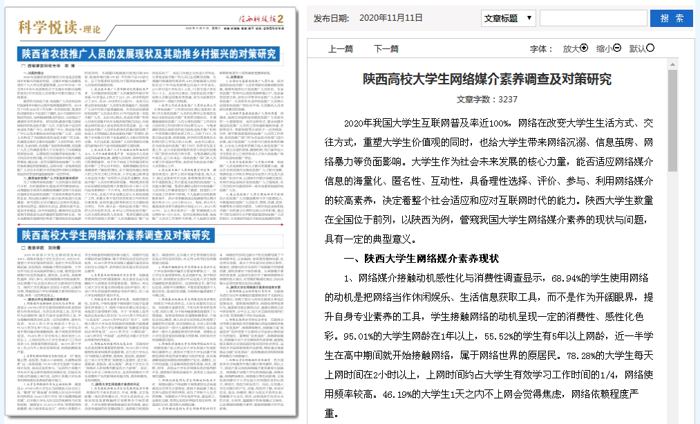 2020年我國大學生互聯(lián)網(wǎng)普及率近100%,網(wǎng)絡在改變大學生生活方式、交往方式,重塑大學生價值觀的同時,也給大學生帶來網(wǎng)絡沉溺、信息繭房、網(wǎng)絡暴力等負面影響。大學生作為社會未來發(fā)展的核心力量,能否適應網(wǎng)絡媒介信息的海量化、匿名性、互動性,具備理性選擇、評價、參與、利用網(wǎng)絡媒介的較高素養(yǎng),決定著整個社會適應和應對互聯(lián)網(wǎng)時代的能力。陜西大學生數(shù)量在全國位于前列,以陜西為例,管窺我國大學生網(wǎng)絡媒介素養(yǎng)的現(xiàn)狀與問題,具有一定的典型意義。