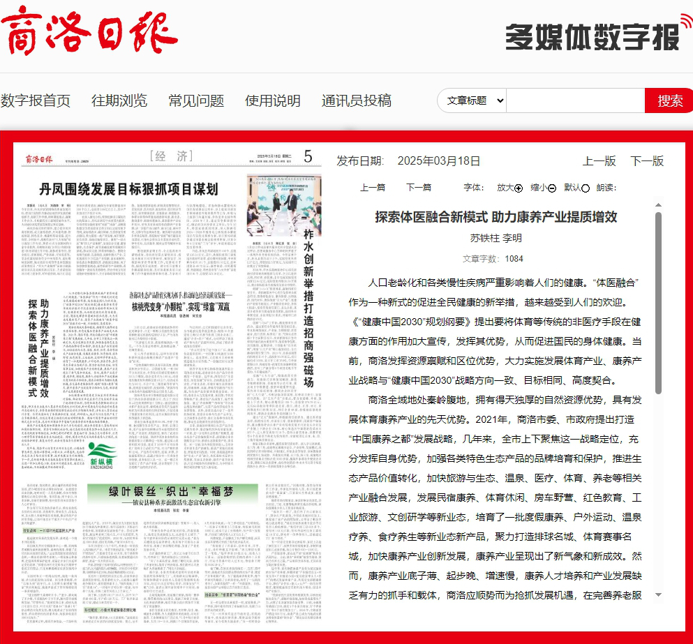 商洛全域地處秦嶺腹地,擁有得天獨(dú)厚的自然資源優(yōu)勢(shì),具有發(fā)展體育康養(yǎng)產(chǎn)業(yè)的先天優(yōu)勢(shì)。2021年,商洛市委、市政府提出打造“中國(guó)康養(yǎng)之都”發(fā)展戰(zhàn)略,幾年來(lái),全市上下聚焦這一戰(zhàn)略定位,充分發(fā)揮自身優(yōu)勢(shì),加強(qiáng)各類特色生態(tài)產(chǎn)品的品牌培育和保護(hù),推進(jìn)生態(tài)產(chǎn)品價(jià)值轉(zhuǎn)化,加快旅游與生態(tài)、溫泉、醫(yī)療、體育、養(yǎng)老等相關(guān)產(chǎn)業(yè)融合發(fā)展,發(fā)展民宿康養(yǎng)、體育休閑、房車野營(yíng)、紅色教育、工業(yè)旅游、文創(chuàng)研學(xué)等新業(yè)態(tài),培育了一批度假康養(yǎng)、戶外運(yùn)動(dòng)、溫泉療養(yǎng)、食療養(yǎng)生等新業(yè)態(tài)新產(chǎn)品,聚力打造排球名城、體育賽事名城,加快康養(yǎng)產(chǎn)業(yè)創(chuàng)新發(fā)展,康養(yǎng)產(chǎn)業(yè)呈現(xiàn)出了新氣象和新成效。然而,康養(yǎng)產(chǎn)業(yè)底子薄、起步晚、增速慢,康養(yǎng)人才培養(yǎng)和產(chǎn)業(yè)發(fā)展缺乏有力的抓手和載體,商洛應(yīng)順勢(shì)而為搶抓發(fā)展機(jī)遇,在完善養(yǎng)老服務(wù)保障、創(chuàng)新“體醫(yī)+康養(yǎng)”模式、提升康養(yǎng)產(chǎn)業(yè)效能等方面加大力度,助推康養(yǎng)產(chǎn)業(yè)高質(zhì)量發(fā)展。