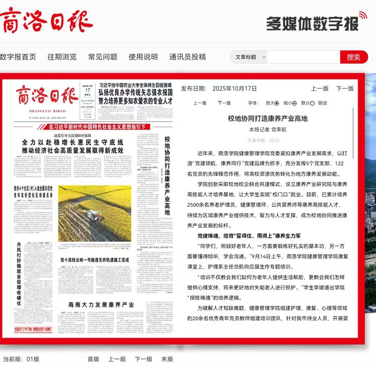 如今,從培育本土人才到攻堅(jiān)產(chǎn)業(yè)難題,從深耕科研轉(zhuǎn)化到服務(wù)基層民生,健康管理學(xué)院以“黨建紅”為引領(lǐng),以“康養(yǎng)綠”為底色,在秦嶺山間的養(yǎng)老院、企業(yè)車間、社區(qū)廣場,都留下了校地協(xié)同推進(jìn)康養(yǎng)事業(yè)的扎實(shí)足跡。