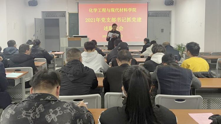 會上,周春生宣讀了《中共化學(xué)工程與現(xiàn)代材料學(xué)院黨總支2021年度黨支部書記抓黨建述職評議考核工作方案》。