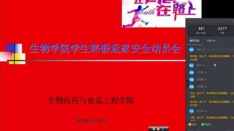 為確保學(xué)生安全離校返鄉(xiāng),1月10日,生物學(xué)院依托釘釘平臺(tái)召開假前學(xué)生安全教育會(huì)議。生物學(xué)院黨總支副書記趙永平,全體學(xué)工人員、班主任及離校學(xué)生代表參加會(huì)議。
