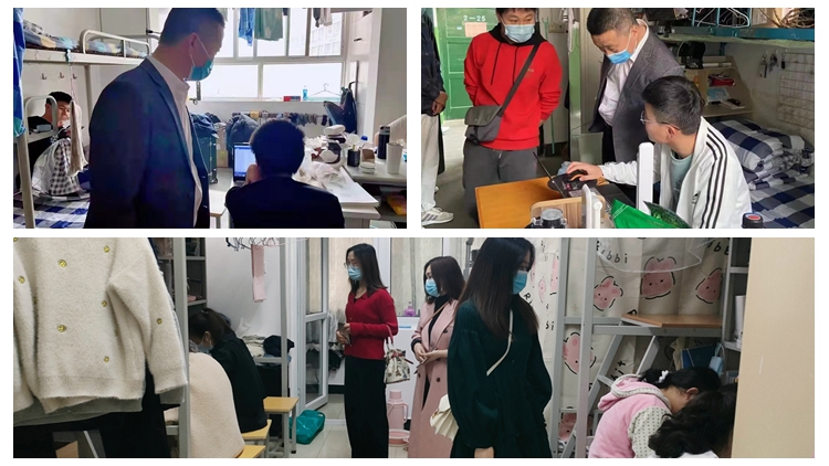 高擴(kuò)昌一行先后進(jìn)入1號(hào)、12號(hào)、14號(hào)學(xué)生公寓,仔細(xì)查看了學(xué)生課前打卡簽到、課中學(xué)習(xí)狀態(tài)、課后學(xué)習(xí)研討情況,對(duì)宿舍防疫衛(wèi)生、用電安全等宿舍設(shè)施進(jìn)行了仔細(xì)排查。叮囑同學(xué)們要嚴(yán)格遵守疫情防控期間校園管理要求、做好疫情防控常態(tài)化下的自我管理和個(gè)人防護(hù),養(yǎng)成良好的網(wǎng)課學(xué)習(xí)和宿舍生活習(xí)慣;要注意加強(qiáng)體育鍛煉,保持積極心態(tài),共同營(yíng)造安全有序的校園環(huán)境。