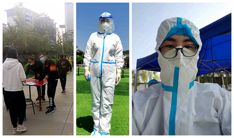 ——廣大教師響應(yīng)號召,積極參與志愿服務(wù)。4月8日首場全員核酸檢測拉開序幕,工作人員緊缺,馬克思主義學(xué)院教師安梅、王偉萍、王貝貝主動請纓,穿上防護服,變身“大白”,在炎炎烈日下協(xié)助醫(yī)護人員完成檢測任務(wù)。4月11日,組織部發(fā)出《致全校各級黨組織和廣大共產(chǎn)黨員的倡議書》后,馬克思主義學(xué)院教師黨員積極響應(yīng),踴躍報名。劉健、葉肖、鞏麗麗、王貝貝、王偉萍等同志參與了校內(nèi)志愿服務(wù),高婷婷、宋秀方等同志積極擔(dān)任了所在小區(qū)志愿者。他們起早貪黑,頂著烈日、冒著風(fēng)雨為疫情防控做出積極貢獻。還有肖歲利等非黨員教師也積極向組織表達了參加志愿服務(wù)的強烈愿望。