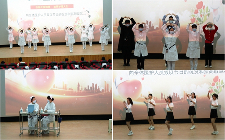 護(hù)理系師生歷經(jīng)3次彩排,一起自編、自導(dǎo)、自演9項(xiàng)節(jié)目,以此迎接國際護(hù)士節(jié)的到來,致敬我們的“白衣天使”:“護(hù)士禮儀展示”對護(hù)士職業(yè)禮儀進(jìn)行了完美的詮釋;情景劇“白衣贊”貼近生活、富有創(chuàng)意,體現(xiàn)了護(hù)士們甘于奉獻(xiàn)、大愛無疆的精神追求;舞蹈“你最最最重要”展示了學(xué)生們撲面而來的青春活力;“呼吸操”帶來增強(qiáng)肺功能的鍛煉方法;手語操“國家”用雙手傳遞出溫暖;大合唱“追夢赤子心”用響亮的聲音告訴世界沒有什么能夠阻擋一顆赤子之心;舞蹈“抗疫天使”,讓我們懂得生命可貴以及護(hù)士的艱辛和偉大;洗手舞“天天向上”突出了正確洗手是自身防疫的關(guān)鍵;最后,朗誦“白衣天使”將整個(gè)現(xiàn)場氣氛推向了高潮,為大家提供了一場視覺盛宴。