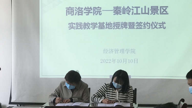 10月10日上午,經(jīng)濟(jì)管理學(xué)院與秦嶺江山景區(qū)舉行商洛學(xué)院校外實踐教學(xué)基地簽約授牌儀式。秦嶺江山景區(qū)管委會副主任隋萍萍,客服部經(jīng)理吉晨棟,經(jīng)濟(jì)管理學(xué)院院長張林、黨委書記高擴昌出席儀式。經(jīng)濟(jì)管理學(xué)院相關(guān)負(fù)責(zé)人參加儀式。