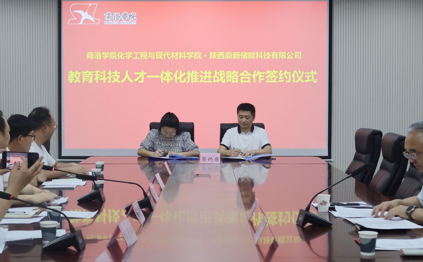 為深化產(chǎn)教融合、推進人才訂單式培養(yǎng),6月24日,化材學(xué)院與陜西鼎新儲能科技有限公司簽署《教育科技人才一體化推進戰(zhàn)略合作框架協(xié)議》。簽約儀式上同時舉行了由鼎新公司贊助的“鼎新杯”商洛學(xué)院第三屆節(jié)能減排社會實踐與科技競賽頒獎儀式。