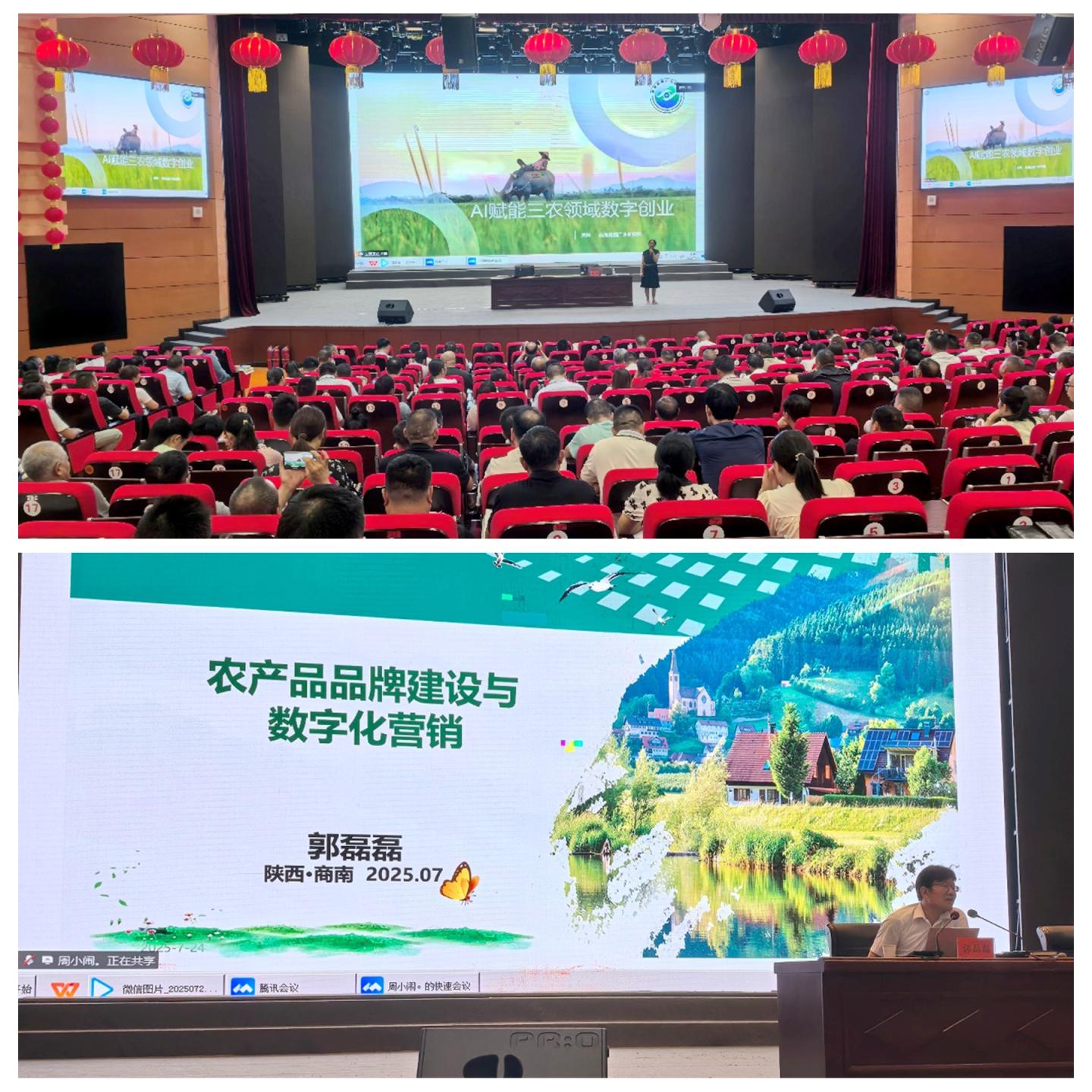 7月23日至25日,由中共商南縣委組織部、商南縣農(nóng)業(yè)農(nóng)村局聯(lián)合舉辦的商南縣2025年致富帶頭人培訓(xùn)班在商南縣文化藝術(shù)中心開班。商洛直播產(chǎn)業(yè)研究院、經(jīng)濟(jì)管理學(xué)院服務(wù)團(tuán)隊(duì)成員房琳、郭磊磊應(yīng)邀為當(dāng)?shù)刂赂粠ь^人開展專題培訓(xùn)。