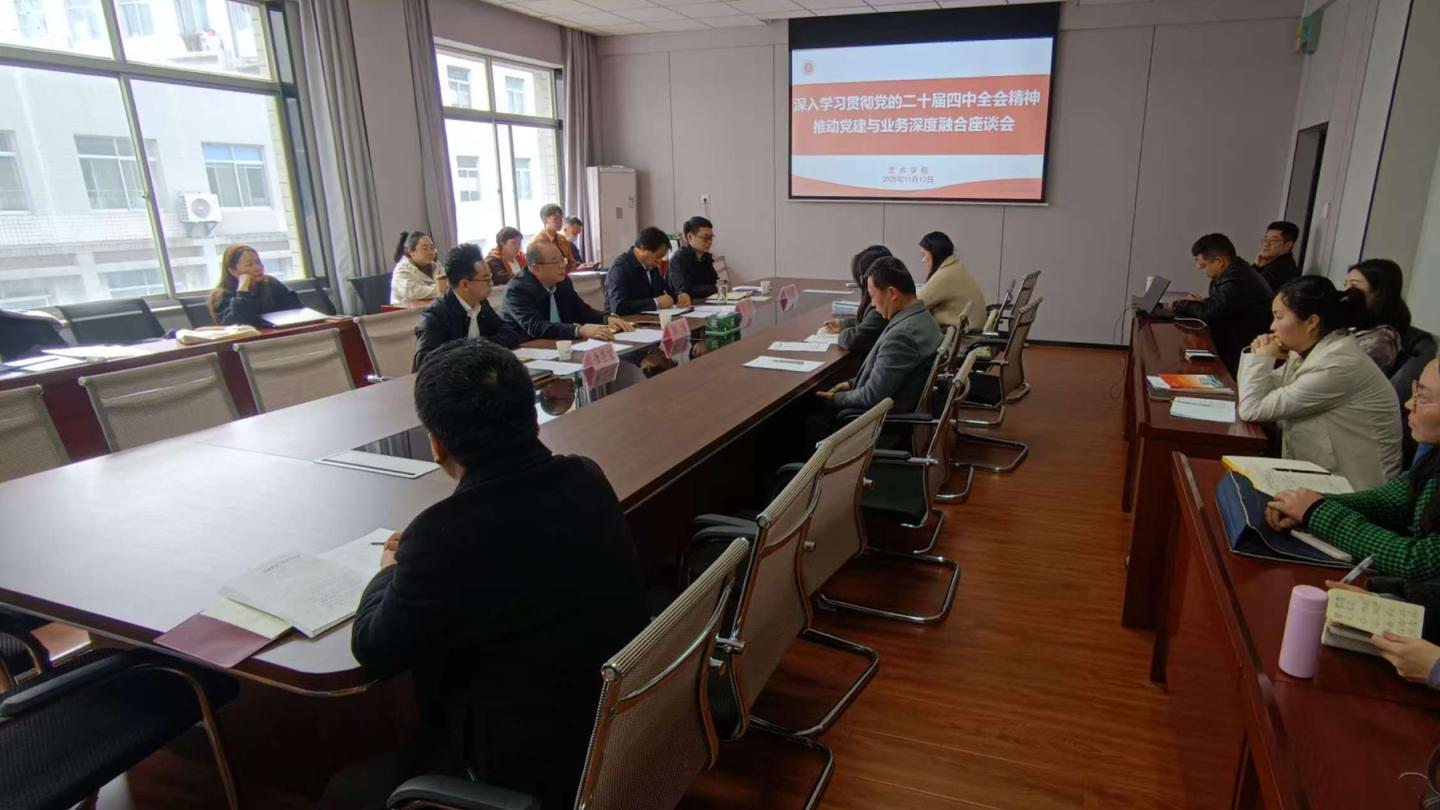 11月12日下午,藝術(shù)學(xué)院召開專題座談會,深入學(xué)習(xí)貫徹黨的二十屆四中全會精神,圍繞推動黨建與業(yè)務(wù)深度融合開展交流研討,并就下一步工作進(jìn)行部署。副校長郭瑾出席會議并講話。學(xué)院相關(guān)負(fù)責(zé)人及全體教職工參加座談會。