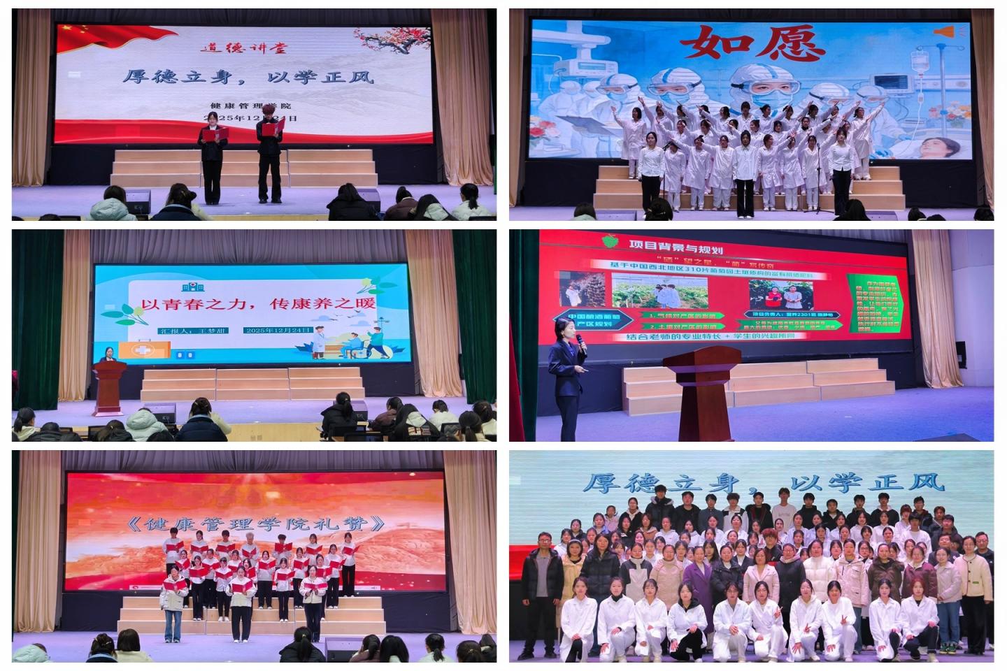 12月24日,健康管理學院在八號教學樓大學生活動中心舉辦“厚德立身,以學正風”主題道德講堂,學院師生代表300余人參加活動。
