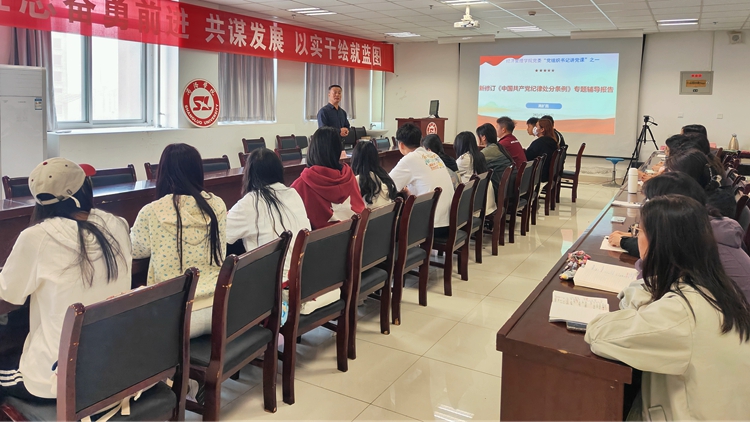 開展一項專題黨課培訓。根據(jù)“三會一課”基本的組織生活制度,經(jīng)濟管理學院黨委在5月份開展“黨組織書記講黨紀學習教育主題黨課”活動,旨在進一步規(guī)范組織生活,加強對黨員和入黨積極分子進行黨性教育和黨紀黨規(guī)教育。5月9日,經(jīng)濟管理學院黨委“黨組織書記講黨課”活動第一課開講,院黨委書記高擴昌作《新修訂<中國共產(chǎn)黨紀律處分條例>專題輔導報告》。接下來,學院黨委7個支部書記將分別結(jié)合支部特點和工作實際,講一堂黨紀教育黨課,通過黨課,講認識、談體會、提措施,扎實推動黨紀學習入腦入心。