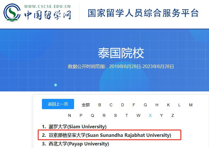 宣素那他皇家大學(xué)(Suan Sunandha Rajabhat University)是中國教育部認(rèn)證、首批推薦泰國重點(diǎn)高校、中國教育部涉外監(jiān)管信息網(wǎng)推薦留學(xué)院校。大學(xué)設(shè)有14個院系以及附屬小學(xué)與中學(xué),本科、碩士、博士專業(yè)學(xué)位學(xué)科120余個,現(xiàn)有全日制在校生29000余名。宣大連續(xù)20年在泰國皇家大學(xué)中綜合排名第1位;是教育部留學(xué)服務(wù)中心戰(zhàn)略合作伙伴,長期與國內(nèi)外多所國際知名院校長期進(jìn)行學(xué)術(shù)合作與交流,出席中國-東盟及“一帶一路”教育展、中國國際巡回教育展等。