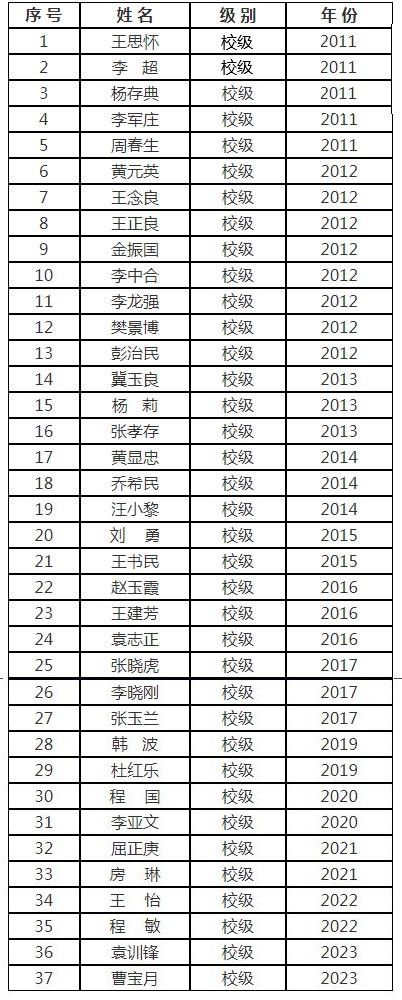 校級(jí)教學(xué)名師一覽表
